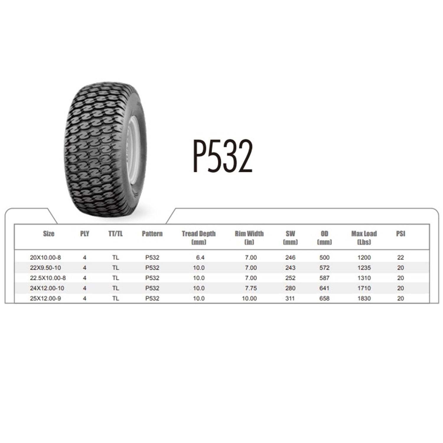 Wanda 25X12-9 P532 4PR Çim Traktörü Golf Lastiği